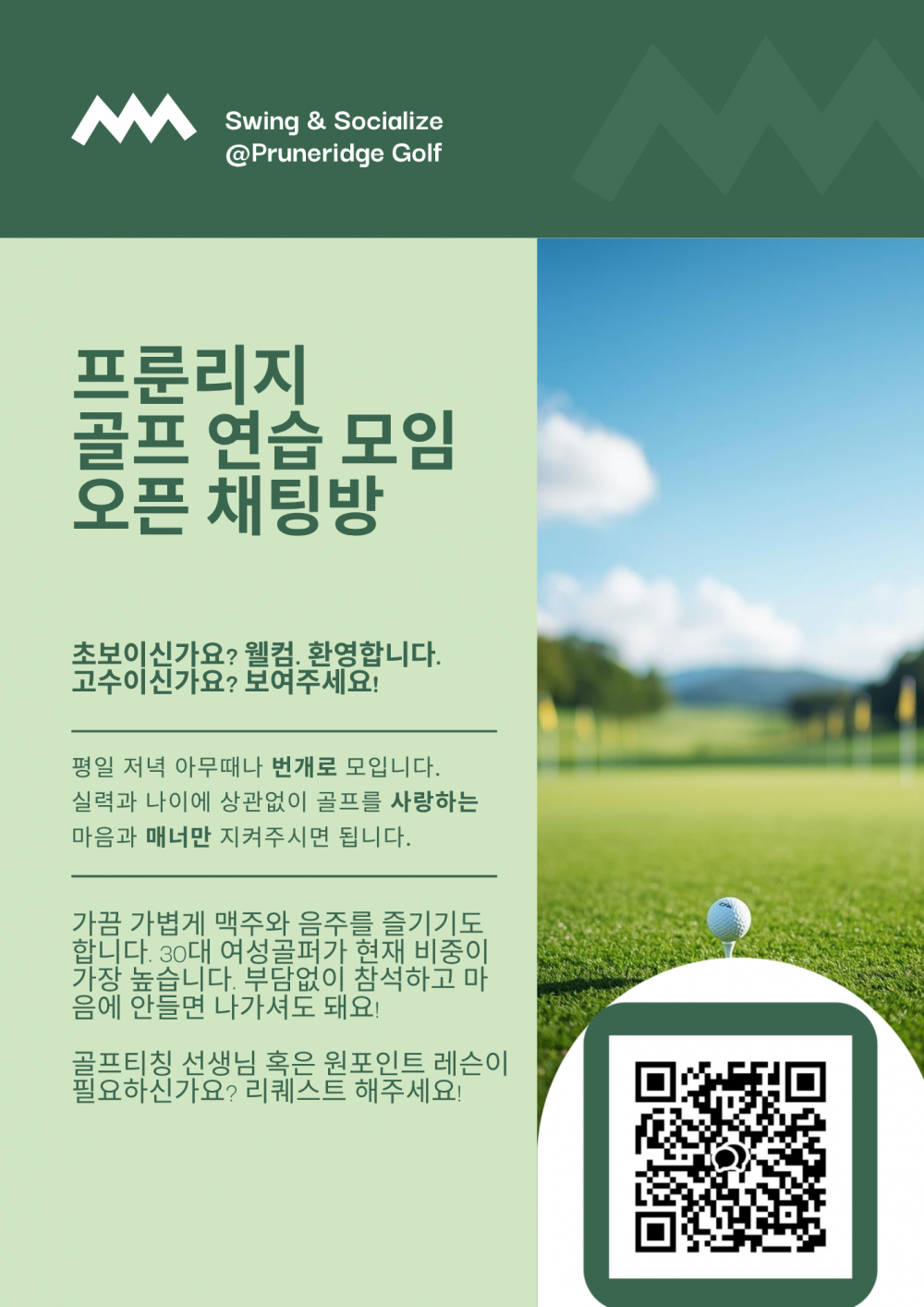 산타클라라에 위치한 프룬리지 골프클럽에서 평일 저녁 번개로 모이는 레인지 연습 모임입니다.