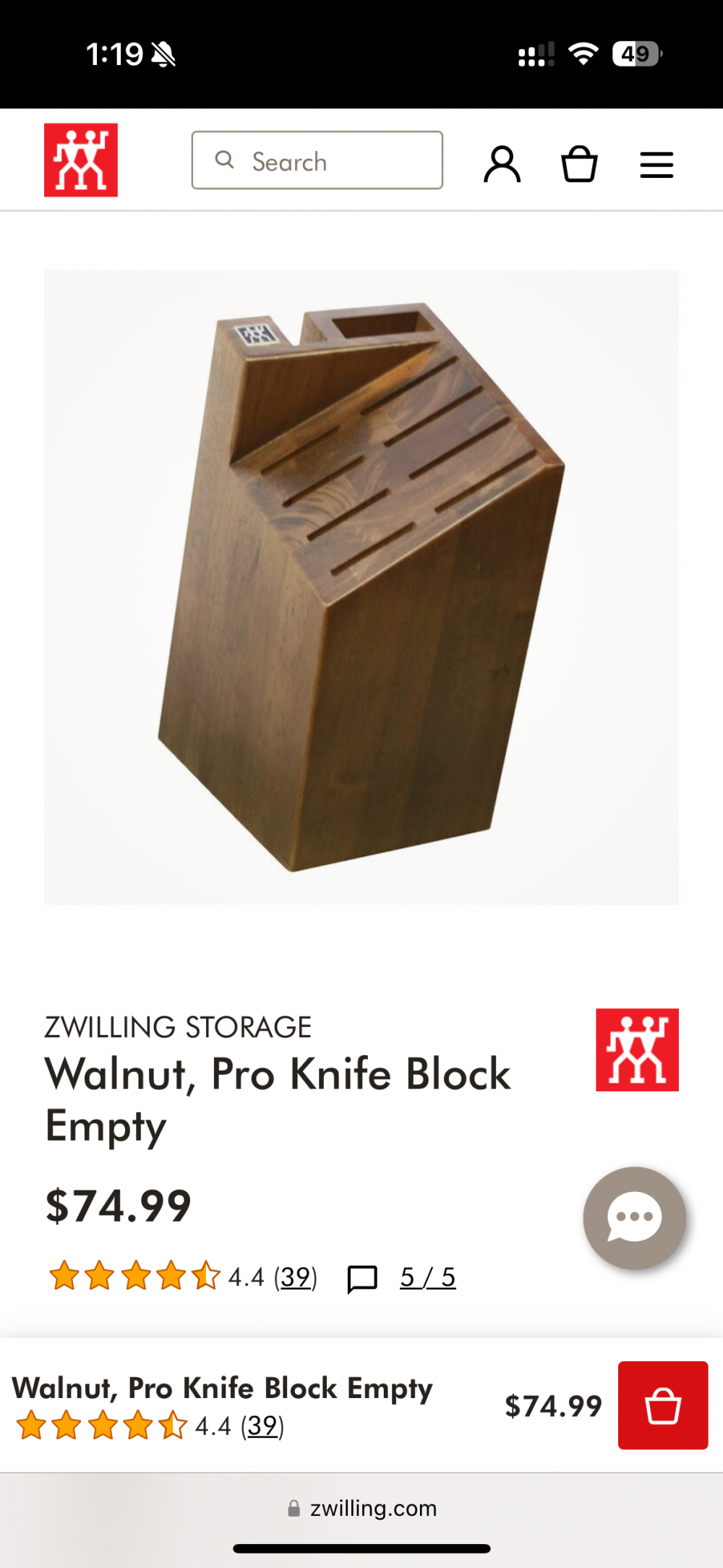 쯔윌링 Knife Block Empty 새재품 판매합니다.