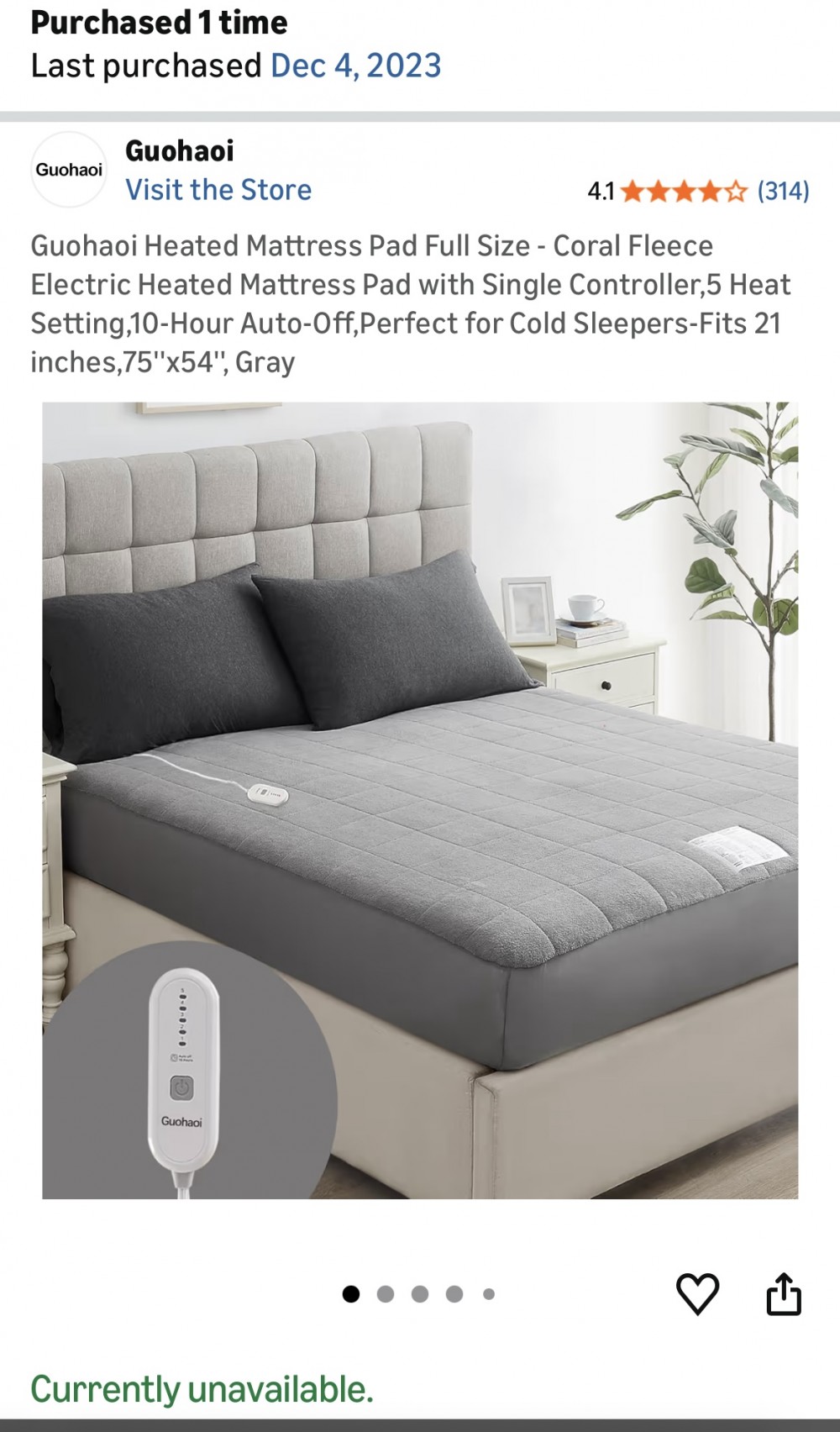 *원하시면 아마존에서 산 전기온열 매트리스 커버까지 함께 드립니다 (마찬가지로 총 사용일 5일 미만)