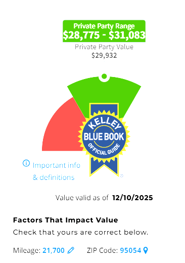 * 주행거리: 21,658 마일 (2025/12/10 기준)