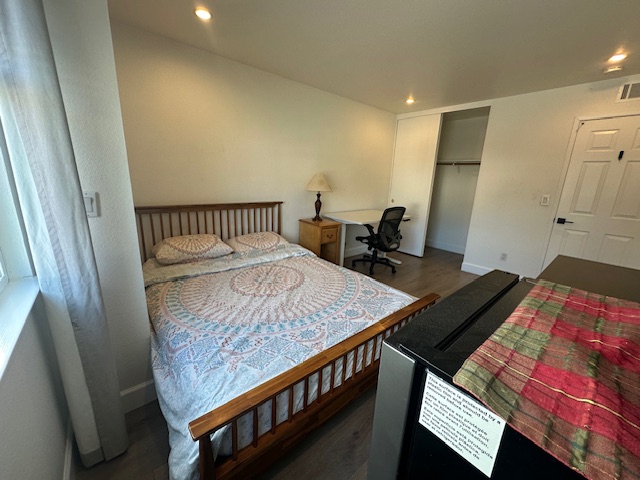 - 욕실 제외한 거주 공간 모두 마루 바닥이고 침대, 책상, 서랍장, 작은 냉장고 등 가구 일체 제공