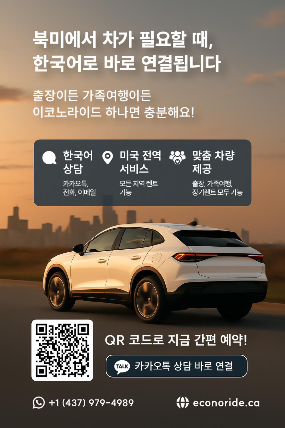 안녕하세요, 이코노라이드 렌터카 서비스가 캐나다 지역을 넘어, 미국 전역 서비스를 확대합니다!