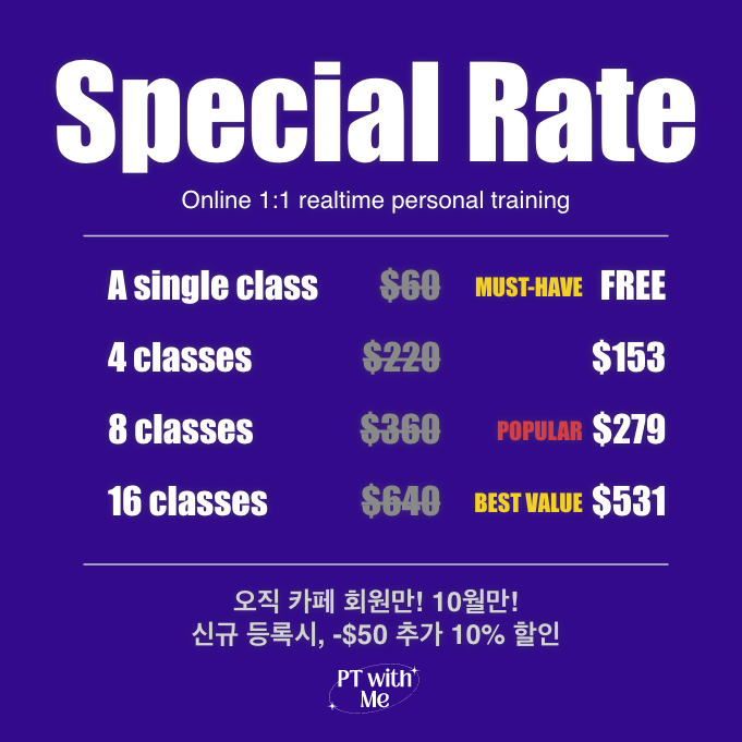 D-2) 10월 역대급 세일! 1:1 라이브 PT, 지금 바로 잡으세요!