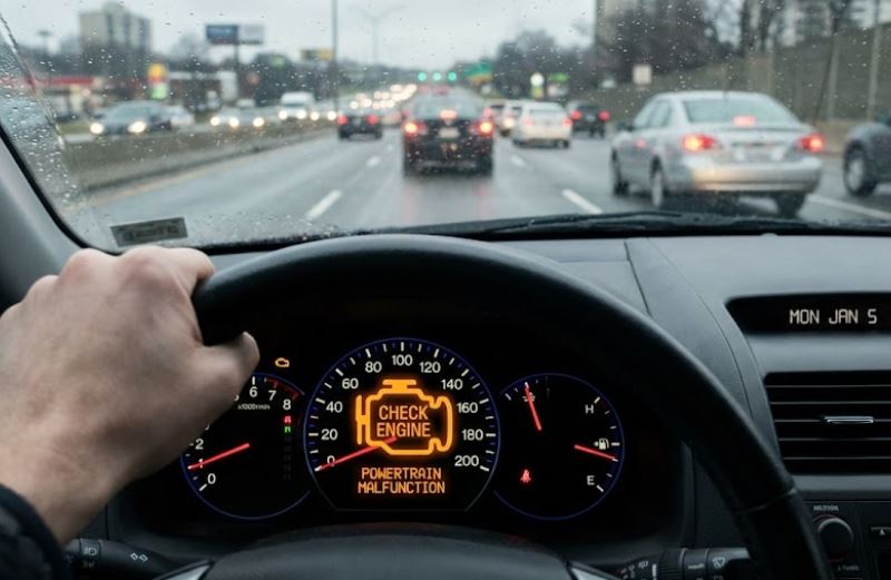 2. 엔진 경고등(Check Engine Light), 절대 사소하지 않습니다. 많은 분들이 차가 굴러가는 데는 문제가 없으니 참고 타십니다. 하지만 캘리포니아 레몬법에서 반복되는 경고등은 아주 중요한 결함으로 간주합니다. 경고등이 켜진 차는 나중에 중고로 팔 수도 없고, 스모그 체크(Smog Check)도 통과할 수 없습니다. 또한 단순 센서 오류일 수도 있지만, 엔진이나 트랜스미션, 배출가스 제어 장치의 심각한 결함을 알리는 전조증상일 수 있습니다.