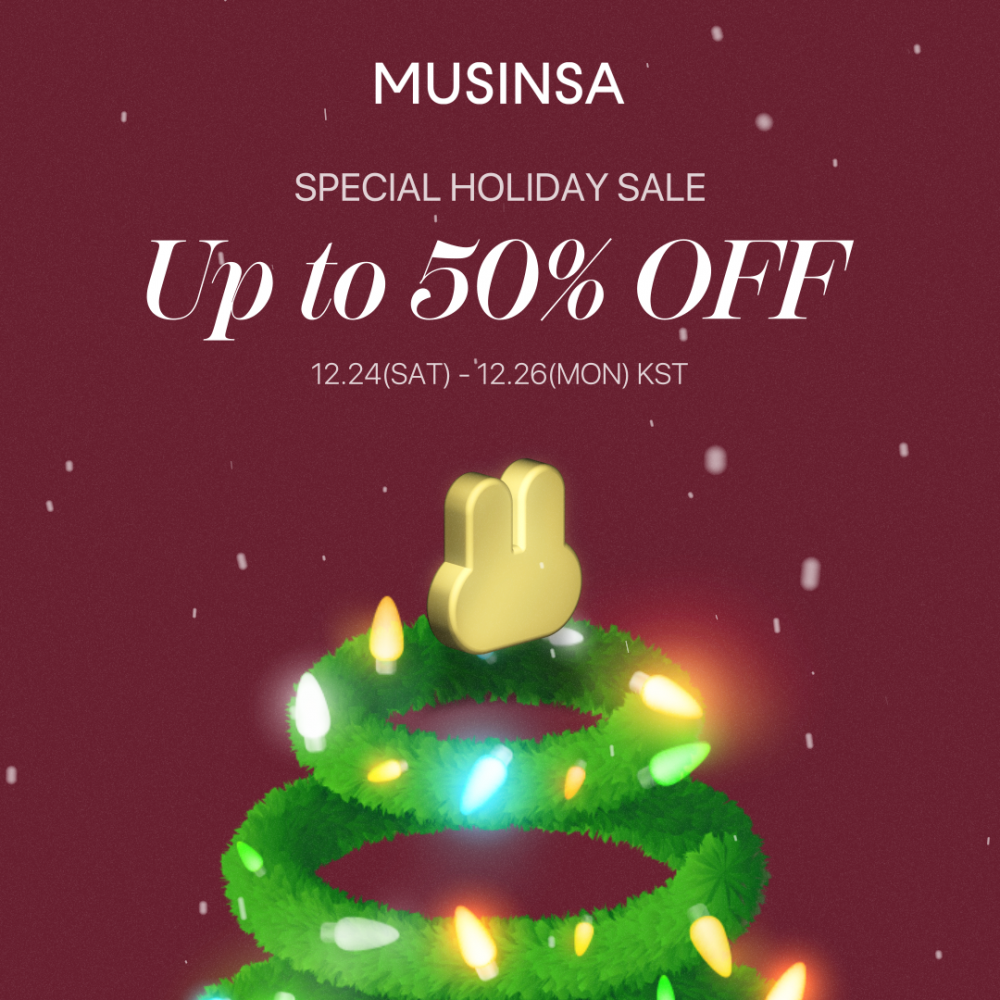 지금 MUSINSA 글로벌에서는 NewJeans와 함께하는 홀리데이 스페셜 ~50% OFF 세일을 진행중!