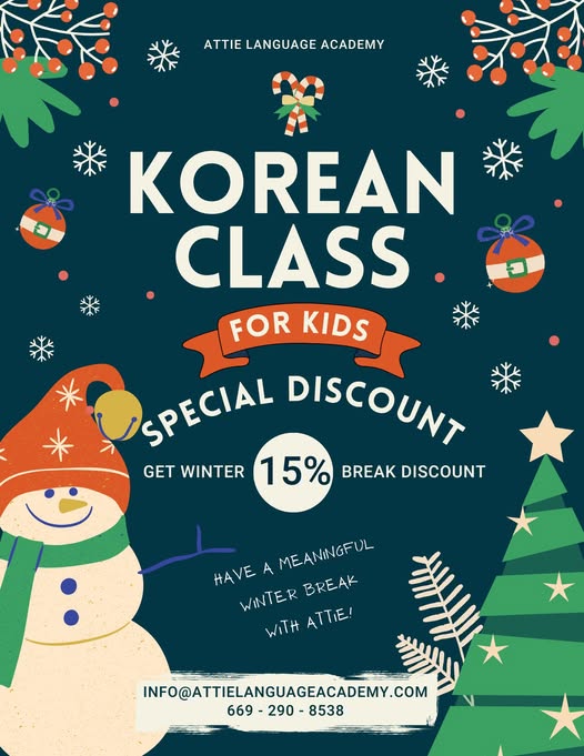 KOREAN 클래스(Adult& Children) 학생모집**겨울방학 특별 15% 할인가로 수업을 수강하세요 !