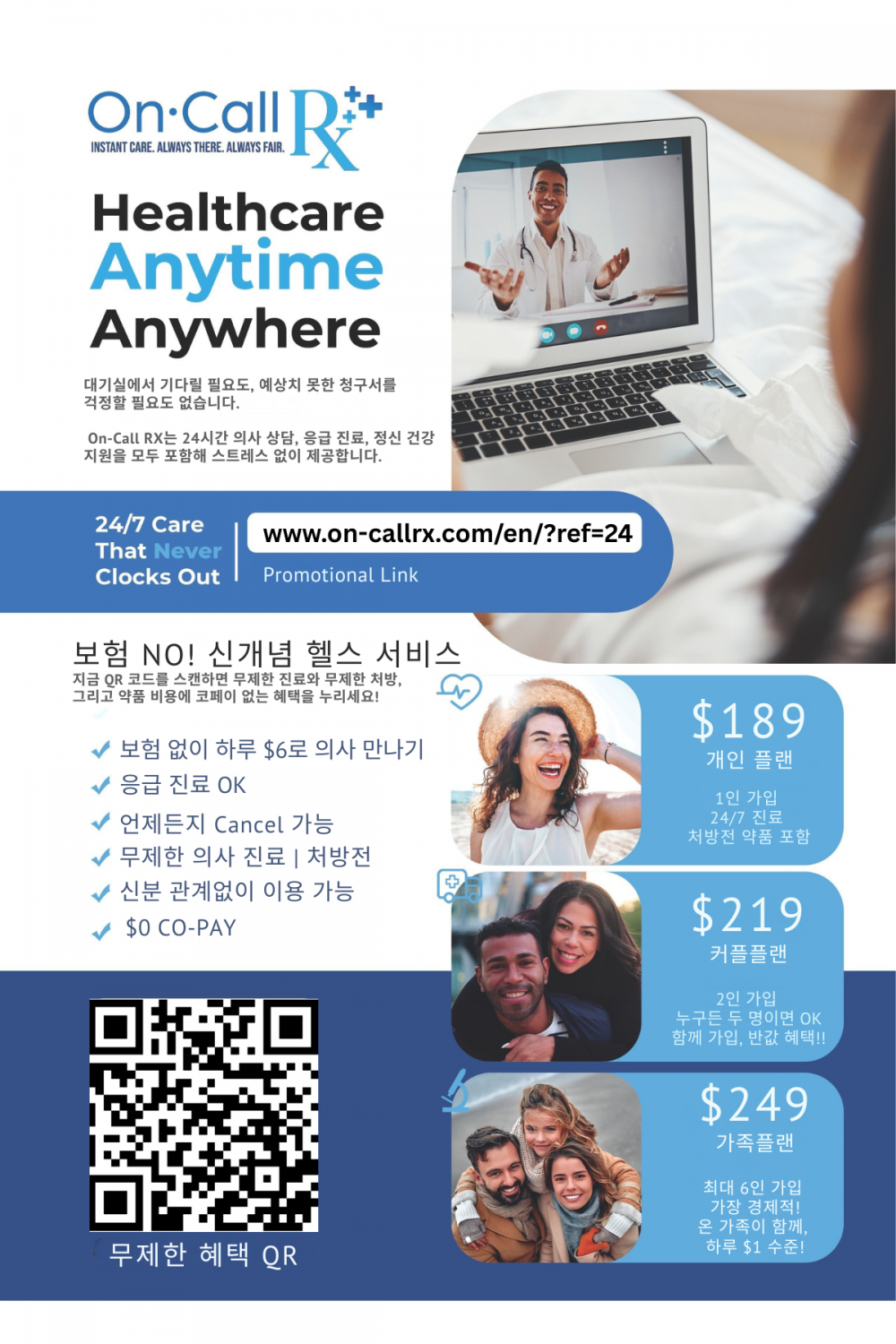 ✅ 하루 약 $6이면 무제한 진료 (Virtual Visit + 처방전)