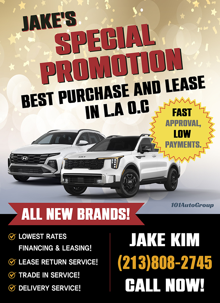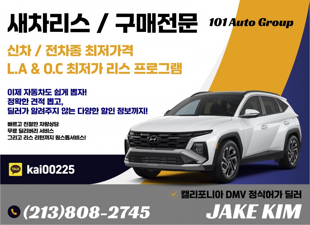 가을 맞이 특가! 추가 할인 혜택~ 리스 및 구입 스페셜 : 가지고 계신 차량 최고가격 매입 : 리스리턴 서비스 : 누구도 모르는 스페셜 차량 안내 213-808-2745