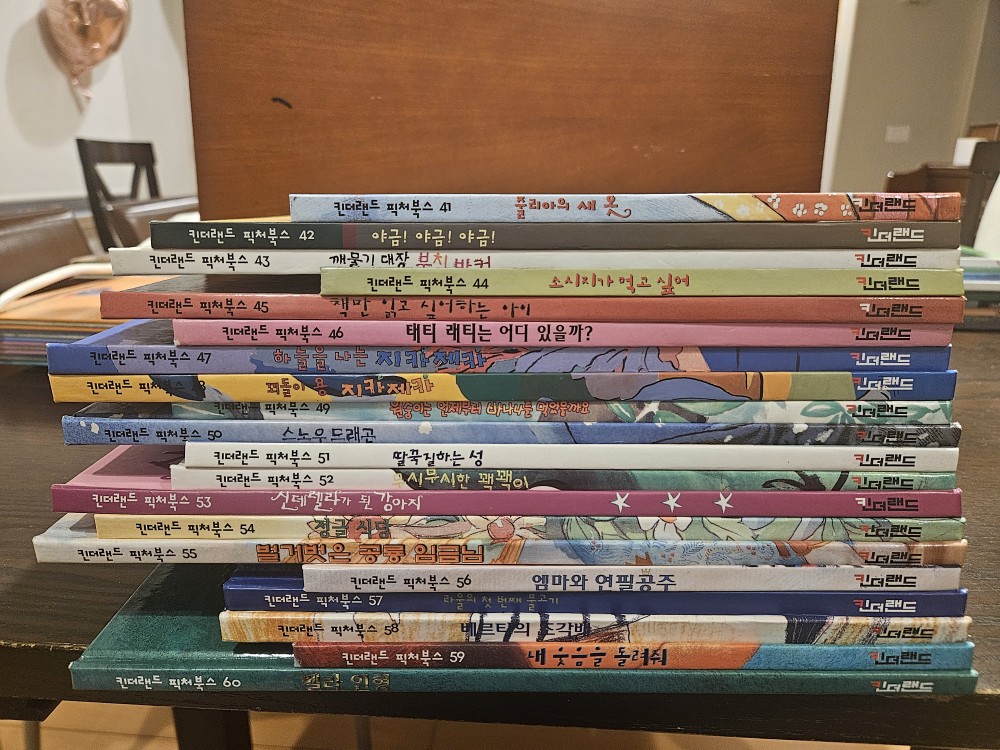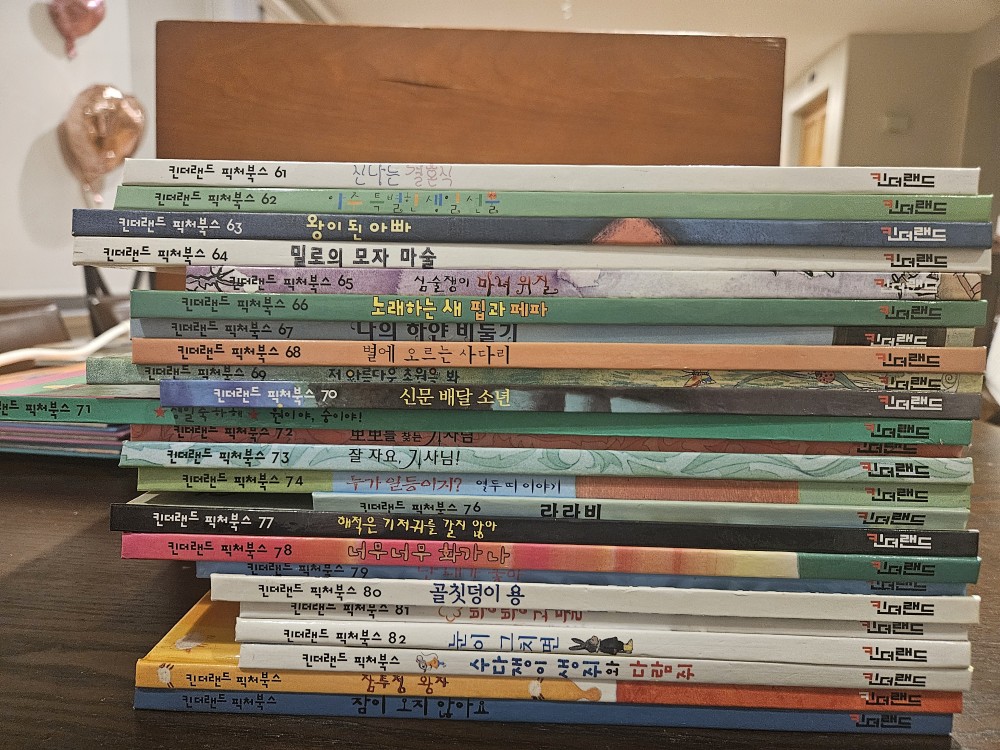 킨더랜드 픽쳐북스입니다. URL 첨부한 내용 보면 아실 수 있듯, 70권/82권/88권/100권 세트 등으로 출시시점에 따라 변화되어 왔습니다.