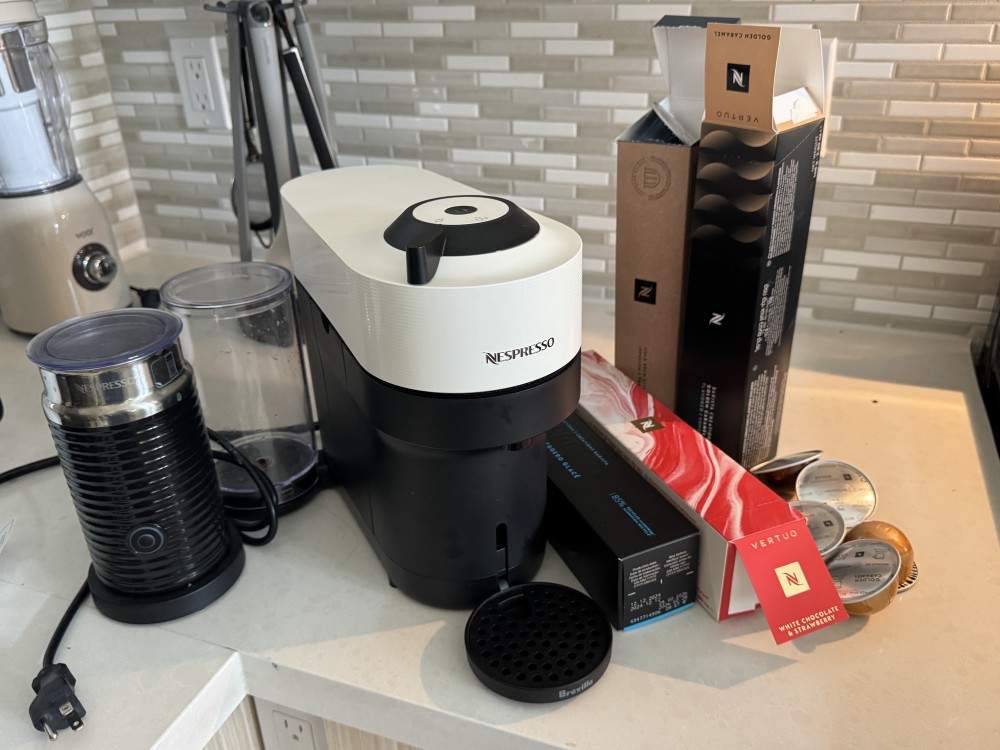 3. 네스프레소 Vertuo Pop+, Milk Frother, 커피캡슐 약 40개 일괄판매 : $150