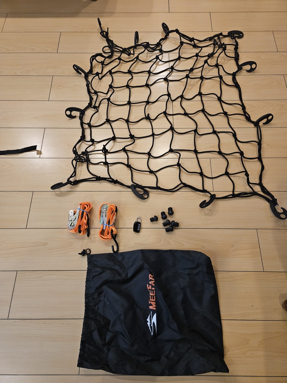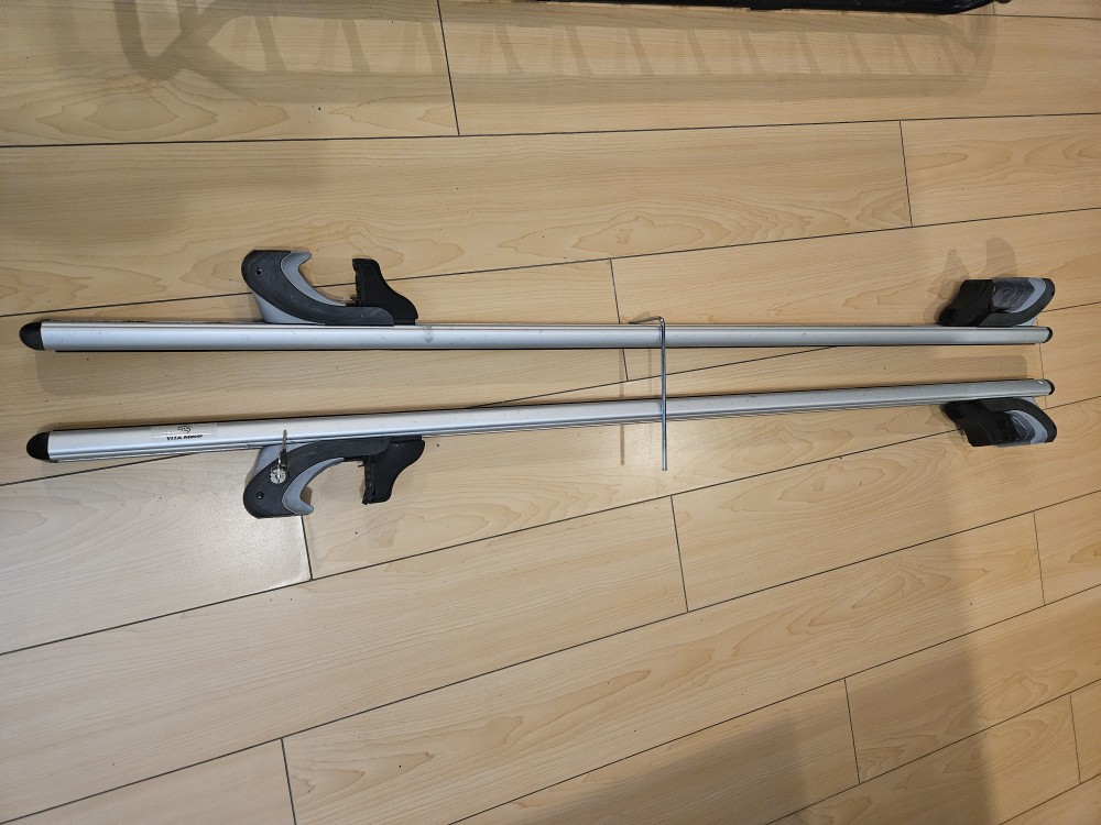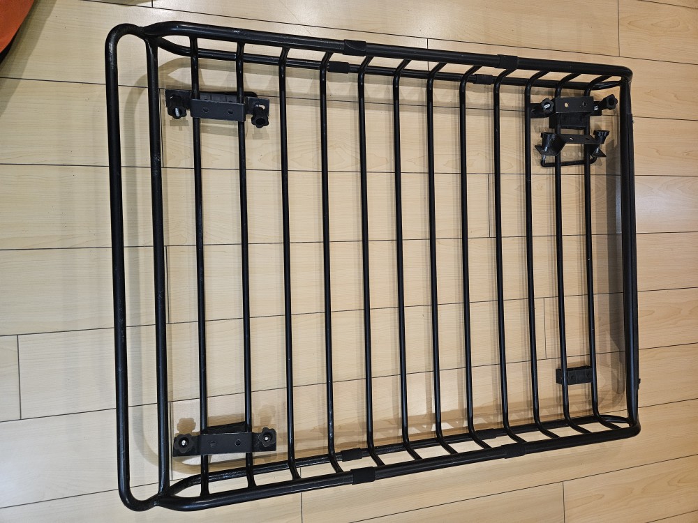 제목대로 루프랙 크로스바와 그 위에 올릴 meefar 캐리어 베스킷 & 백 및 그물망 등을 함께 판매합니다.